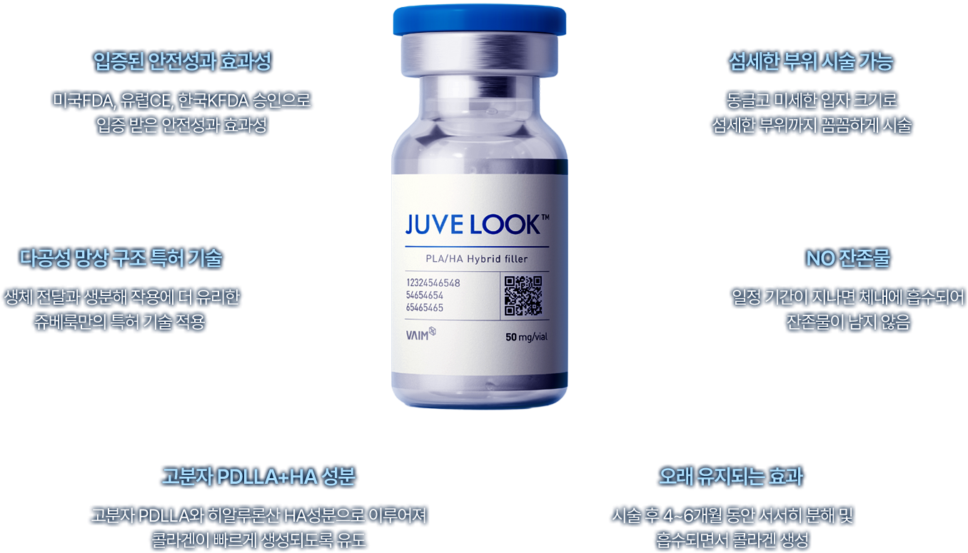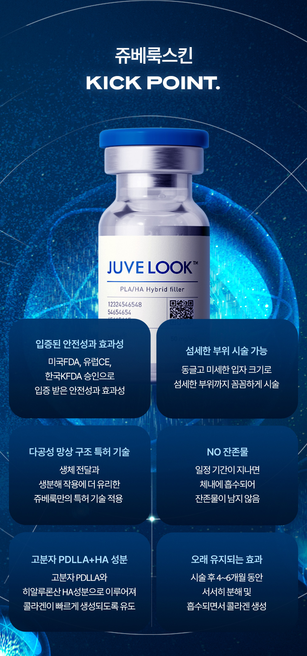 생분해성 고분자 PDLLA와 히알루론산 HA로 이루어진 쥬베룩 스킨은 미세한 입자를 피부 얕은 층에 주입하는