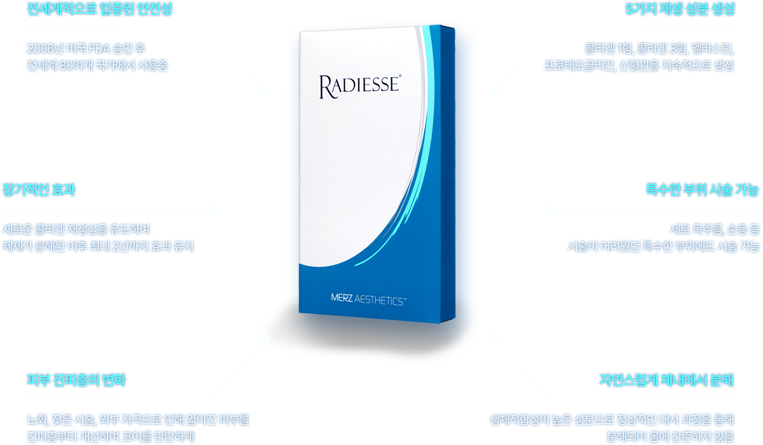 이러한 세로 목주름에 레디어스를 시술하면 피부 내 세포의 활동을 활성화시켜 신생 콜라겐을 유도하고