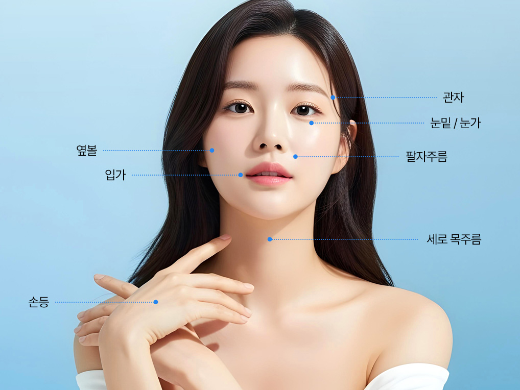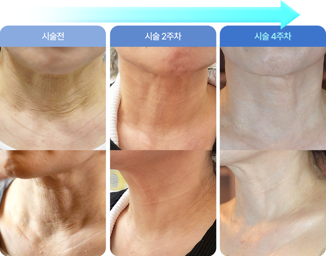기존의 노화된 콜라겐과 엘라스틴을 재생시켜 개선이 어려운 자글자글한 세로 목주름이 개선됩니다.