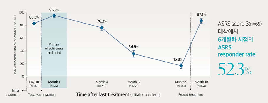 1회 시술 기준, 수분광 효과를 6개월 이상 유지할 수 있습니다.