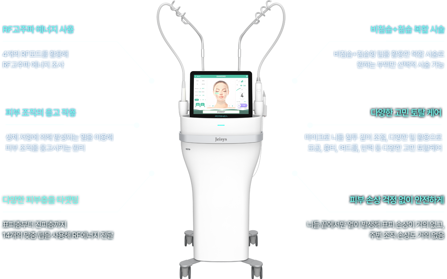 - 포텐자는 한 가지 장비로 다양한 피부 고민을 개선할 수 있습니다.