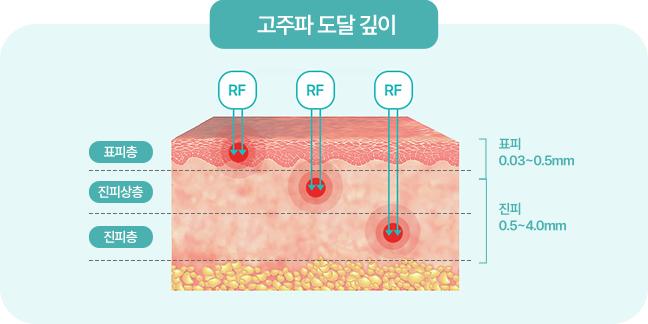 RF고주파와 미세한 마이크로 니들을 결합하여 표피층부터 진피층까지 다양한 피부층에 RF고주파 에너지를 전달함으로써